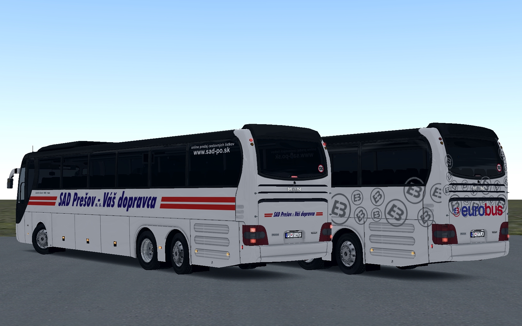 Tentokrát si dáme dva MANy Lion´s Coach L, slovenských dopravcov Eurobus a SAD Prešov. Ani jedno z týchto vozidiel v reále neexistuje, vzniklo to viac menej podľa Magelysov. :)