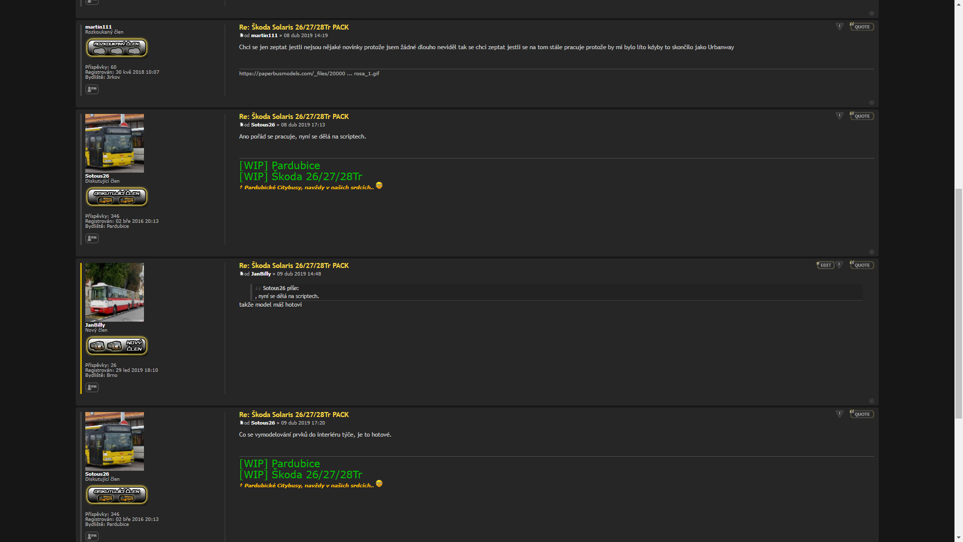 SU18 píše:Na projektu sa nepracuje. Autor Sotous26 sa vyjadril vo vlákne "Škoda26/27/28Tr Pack", že projekt "Urbanway" je mŕtvy. Možno časom sa oživí, takže z toho sa dá predpokladať, že žiaden dátum vydania nebude dodržaný.