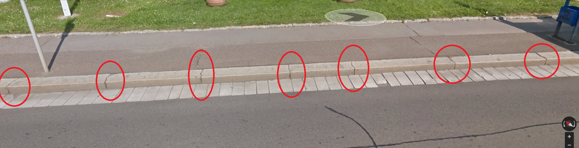 česky - pro ty, co neumí anglicky, aby si to taky mohli přečíst, vytýkám mu nesedící spáry mezi částmi obrubníku, rozdílný odstíny asfaltu v křižovatkách, a chybějící dlažební kostky na okrajích silnice.